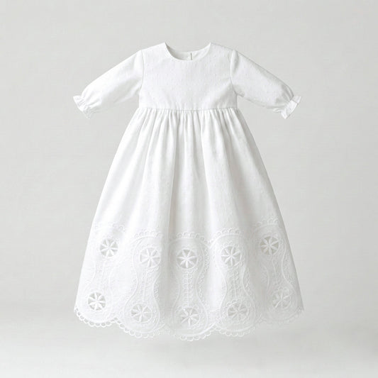 Faldón plumeti bordado manga larga