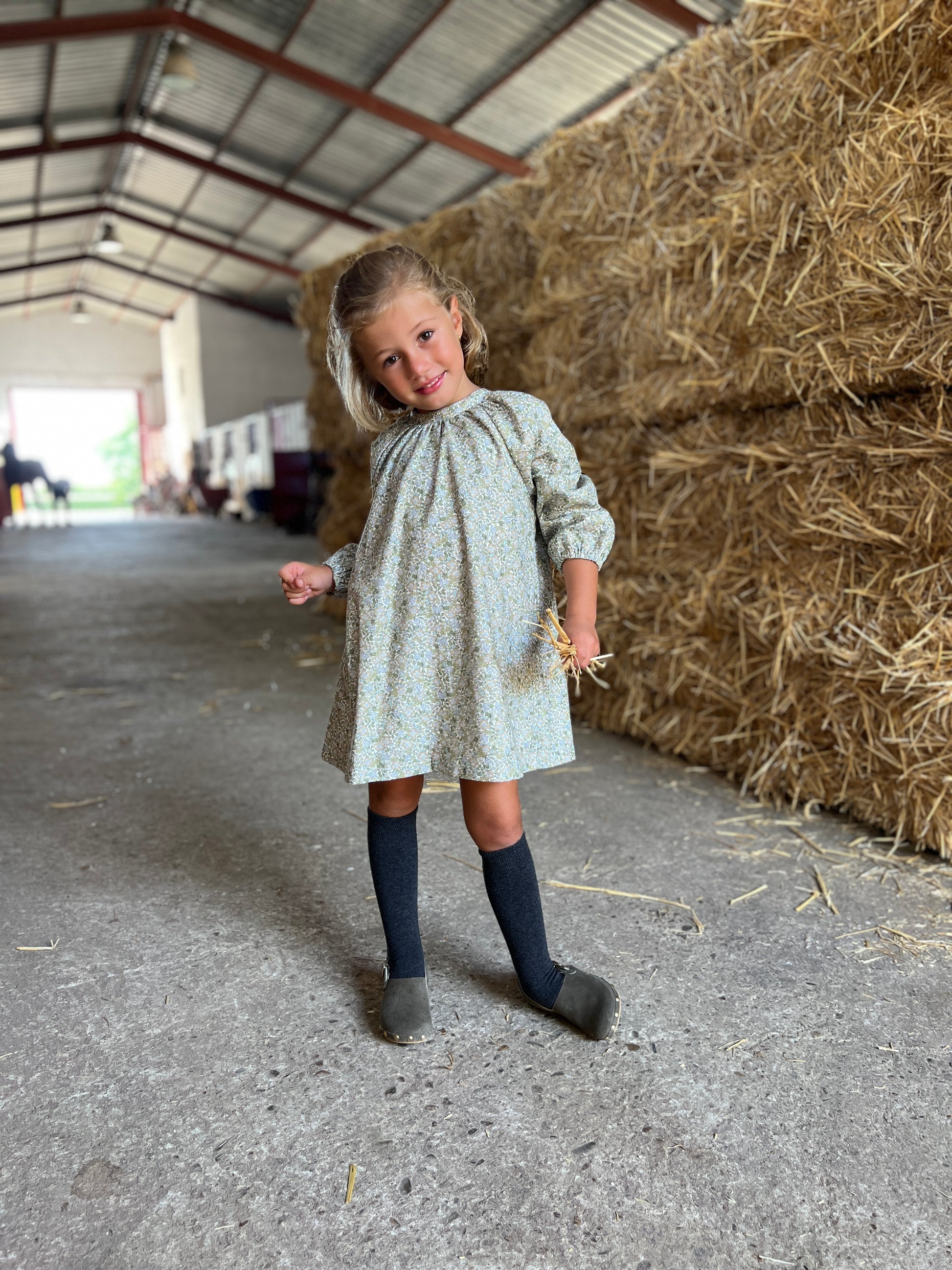 Vestido de manga larga en viyella algodón con motivo floral en tonos verdes. Este nuevo modelo tiene un acabado sencillo, sin cuello, que lo hace súper versátil, ya que se puede poner sin nada o incluso con un cuello postizo, lo que más nos apetezca cada día.
